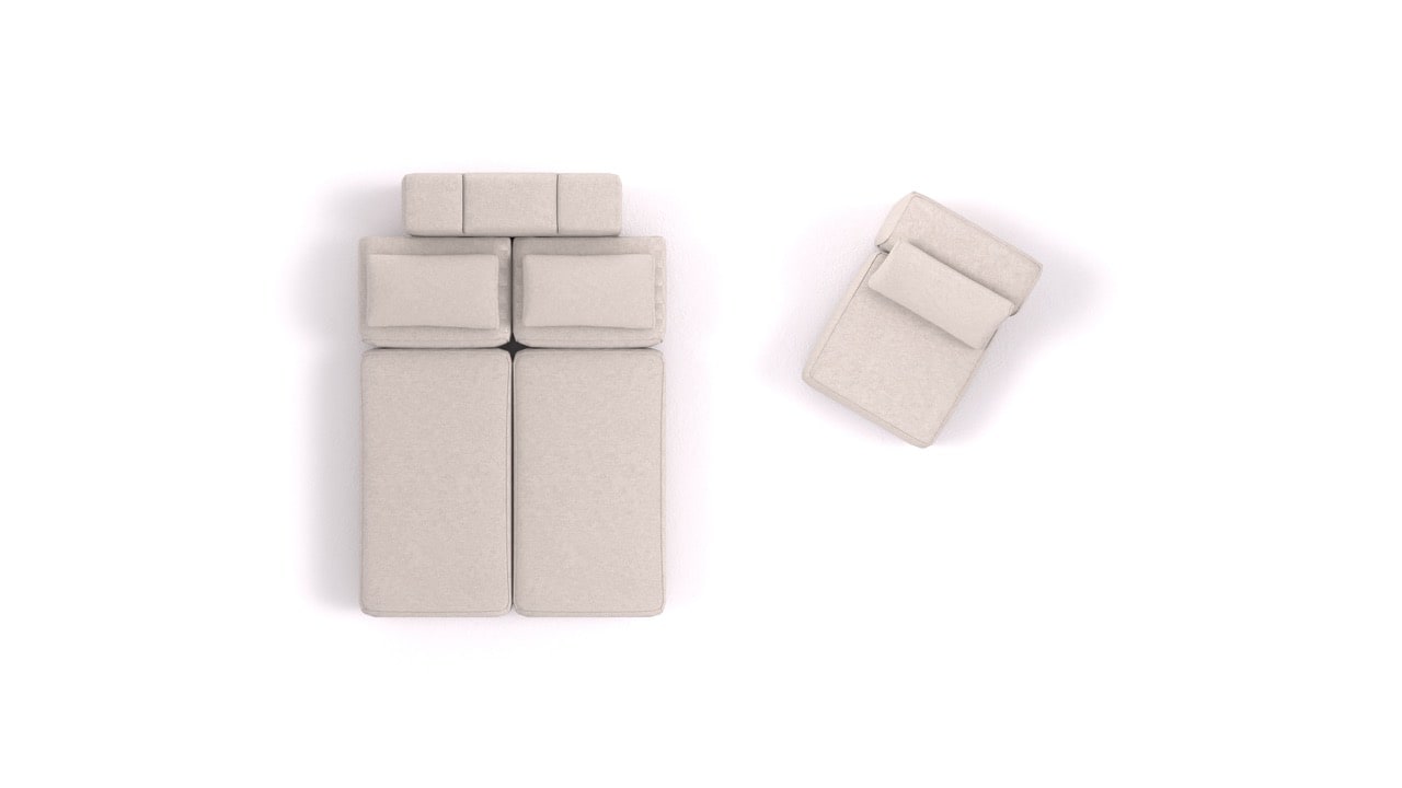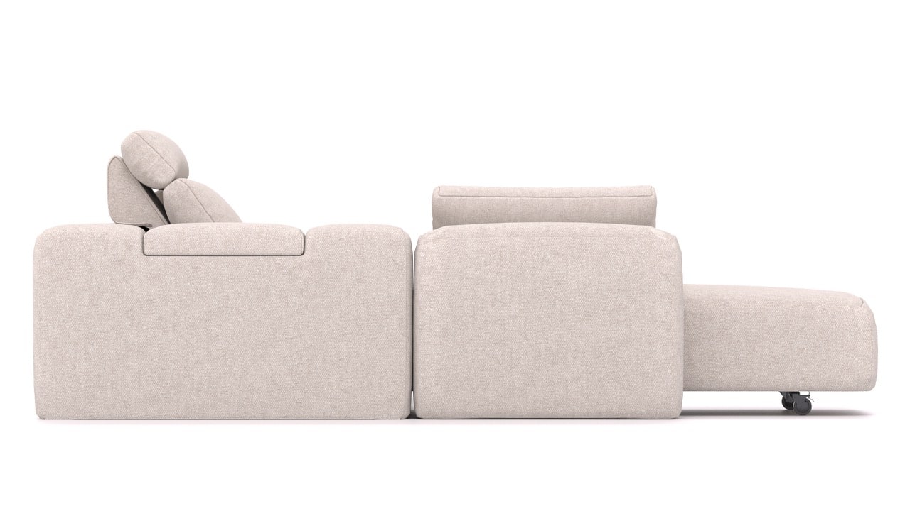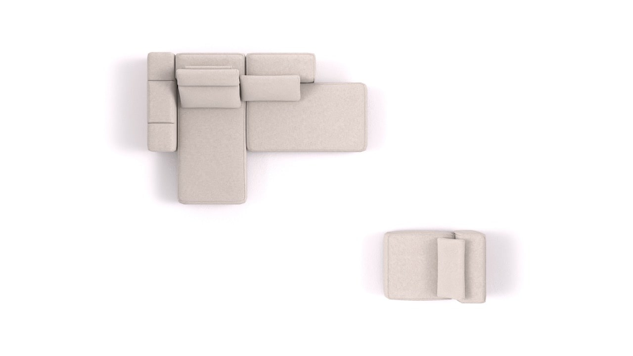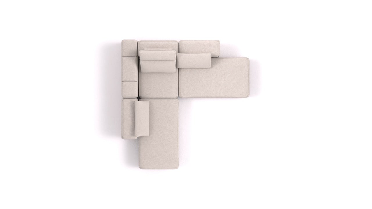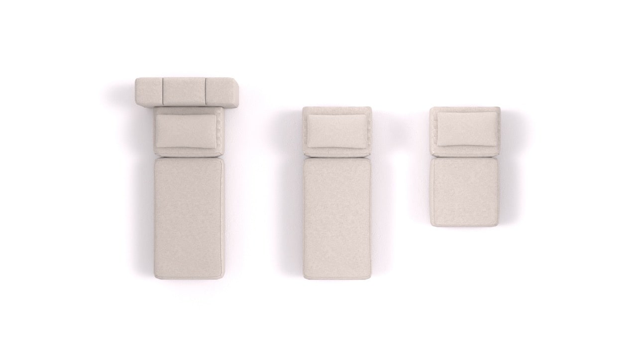 Milyen elemeket tartalmaz ez az összeállítás?BonBon 3 M+ egy moduláris kanapé a BonBon 3 kollekcióból, amely a következő elemekből áll: